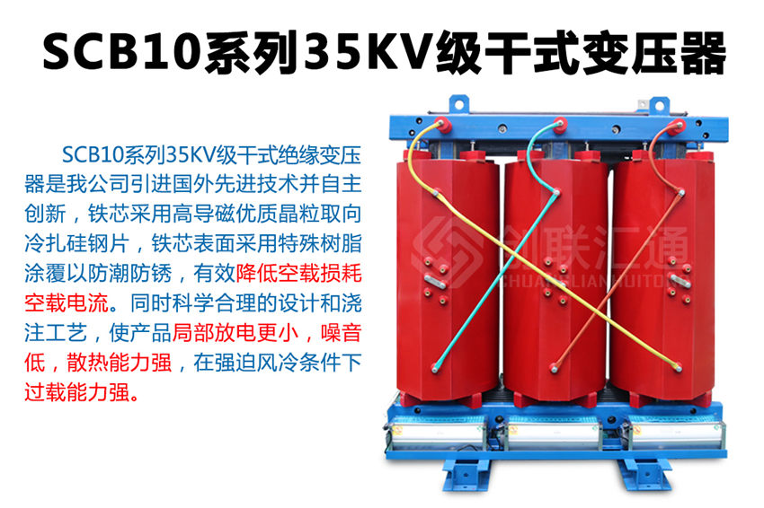 SC(B)10系列35KV環氧樹脂干式變壓器新一代節能產品,該系列配電變壓器產品使用在變壓器電壓直接從35KV電網轉變為400V配電的特殊場合,可減少10KV輸變電環節,使運行維護費用明顯降低。35KV級無勵磁調壓配電變壓器產品通過了家級鑒定,確立為高新技術產品。 產品具有損耗低、阻燃性好、承受短路能力強、體積小、噪音低、耐雷電沖擊性能好,溫度分布均勻等優點,而且由于環氧樹脂干式變壓器不使用變壓器油,不會產生油污染,無爆炸危險。產品可作為配電變壓器廣泛適用于電力系統城網改造,也可用于高層建筑、機場、車站、港口、地鐵待對消防、環保有嚴格、特殊要求的多種場合。